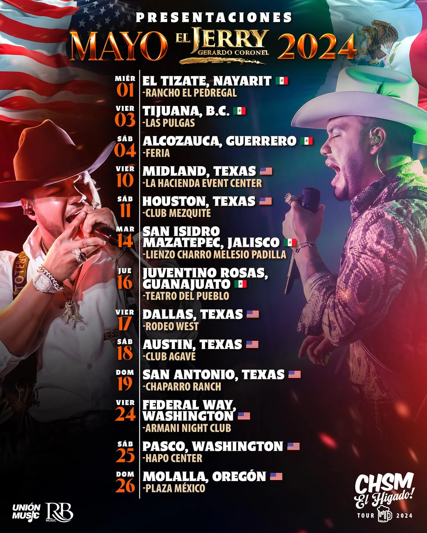 Descubre las presentaciones de Gerardo Coronel "El Jerry" de Mayo del 2024